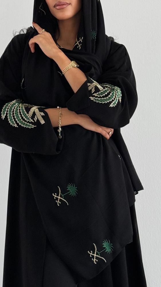 عباية نجد فاخرة باللون الأسود مصممة من أجود أنواع القماش الكوري الملكي، بلمسة راقية تجمع بين الأصالة والفخامة. تميّزت بتفاصيل وطنية خاصة على الأكمام مطرزة برمز السيفين والنخلة لتعكس روح الانتماء والفخر بالوطن. تصميم عصري يليق بمناسبات اليوم الوطني ويمنحك حضورًا مميزًا يجمع بين الأناقة والهوية بقصة نص كلوش