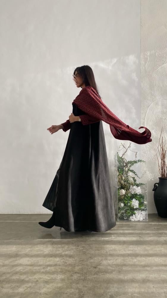 وصف عباية حنان أسود مع كشميري