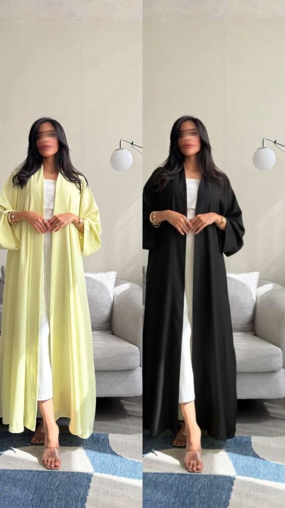 عباية أنثوية ناعمة بلون البيبي يلو الهادئ، مصممة من قماش كريب باربي إندونيسي بخامة خفيفة وانسيابية تمنحك راحة وأناقة طوال اليوم.